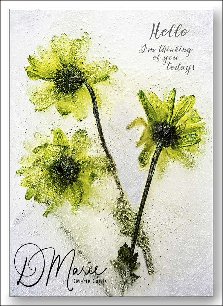 We are celebrating you today with a card!  I thought I would start to share with you weekly some of my favorite Botanical Frozen Collections. I am enjoying the technique of freezing flowers, picking the right flower is so very important.  I am experimenting with many different types of flowers not all flowers freeze well in water and then there are so many different types of pans, dishes, bowls, etc that work or do not work.  Thanks to Photographer Mo Devlin on teaching me this technique, I love it!